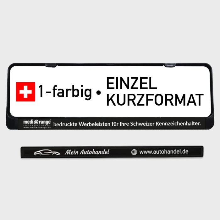 Jetzt Schweizer Kontrollschilder mit 1-farbigem Druck individuell bedrucken lassen – für einen professionellen Auftritt auf jedem Fahrzeug.